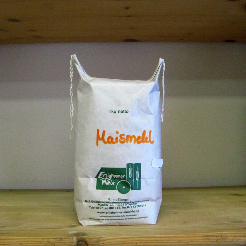 orangegelbes glutenfreies Mehl aus nicht genverändertem Bio-Mais mit fruchtigem Geschmack für Kuchen und Fladenbrot